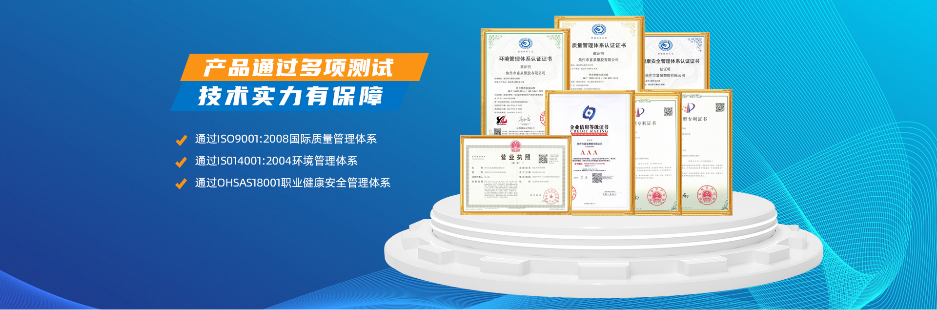 - 焦作市富泉塑膠有限公司,創立于1995年,是一家集研發、設計、生產、銷售為一體的大型管材企業。公司位于太極故里、黃河之濱一一河南焦作溫縣。公司占地128畝,現有職工210余人,其中具有中技術職稱的19人。生產、檢驗設備58臺(套),包括PVC實壁管生產線11套、PE實壁管生產線12套、HDPE雙壁波紋管生產線6套、PVC雙壁波紋管生產線5套,檢驗設備14臺(套)。主要產品有:Φ20mm-630mm、各種壓力規格的PVCU、PVC-M、PE給水管材,PVC-U節水灌溉管材,HDPE燃氣和礦用管材,DN200-800mm的HDPE、PVC雙壁波紋管及各種噴灌、滴灌工程材料。承接大中型市政供排水、飲水安全及節水灌溉等工程。 富泉塑膠公司重視產品的質量、安全、環保和節能,在同行業中率先完成了“新華節水產品認證”,全方面通過ISO9001:2008國際質量管理體系、IS014001:2004環境管理體系和OHSAS18001職業健康安全管理體系的一體化導入,并建立起規范的現代企業管理體系。公司以“質量”為先導,采用質量跟蹤、多環節把關的方法,組建具有行業水準的企業技術檢測中心,常年委托水利部節水灌溉設備檢測中心、河南省產品質量監督檢驗院對產品跟蹤檢測,并由中國人民保險公司承保產品質量。公司連續多年被河南省水利廳確定為“安全飲水設備、節水灌溉設備”定點生產企業,并獲得“中國名優產品”“質量、服務、信譽AAA企業”“河南省**產品”“河南省水利企業”“河南省守合同、重信用企業”等榮譽稱號?! 「蝗苣z公司堅持“用戶為上”的服務理念,長期以來,全方面關注客戶價值,不斷提升服務水平。服務隊伍常年為客戶的產品設計、施工、安裝提供合理的方案和全程細致、周到、**、快捷的技術服務。公司自成立以來,一直堅持以人為本的宗旨,塑造企業形象,并致力于新產品的開發,憑借雄厚的技術開發能力,先進的工藝制造流程,嚴格的質量管理保證體系,優良的售后服務網絡,已成為河南省大的飲水、灌溉及排水管材設備制造商。產品暢銷全國,而且還以公司雄厚的綜合實力在業界中占據著重要的地位。